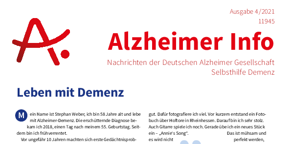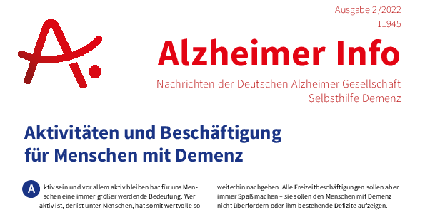 Der kostenlose Newsletter der Deutschen Alzheimer Gesellschaft erscheint ca. alle sechs Wochen und informiert über aktuelle Neuigkeiten rund um das Thema Demenz sowie über Neues aus der Geschäftsstelle.