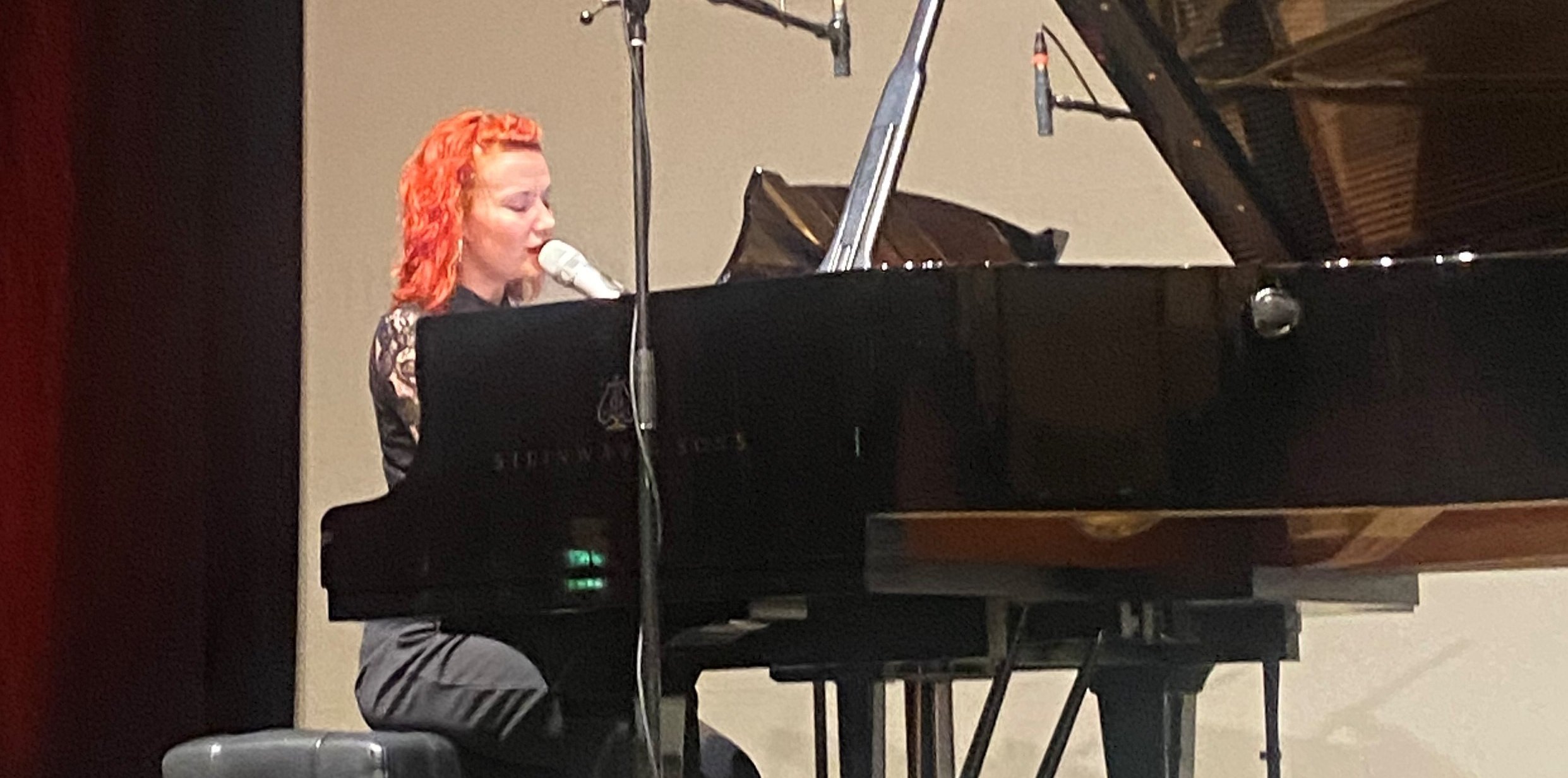 Titelabbildung: Ein alter Mann mit Gitarre und ein junger Mann haben Spaß und machen "High Five"